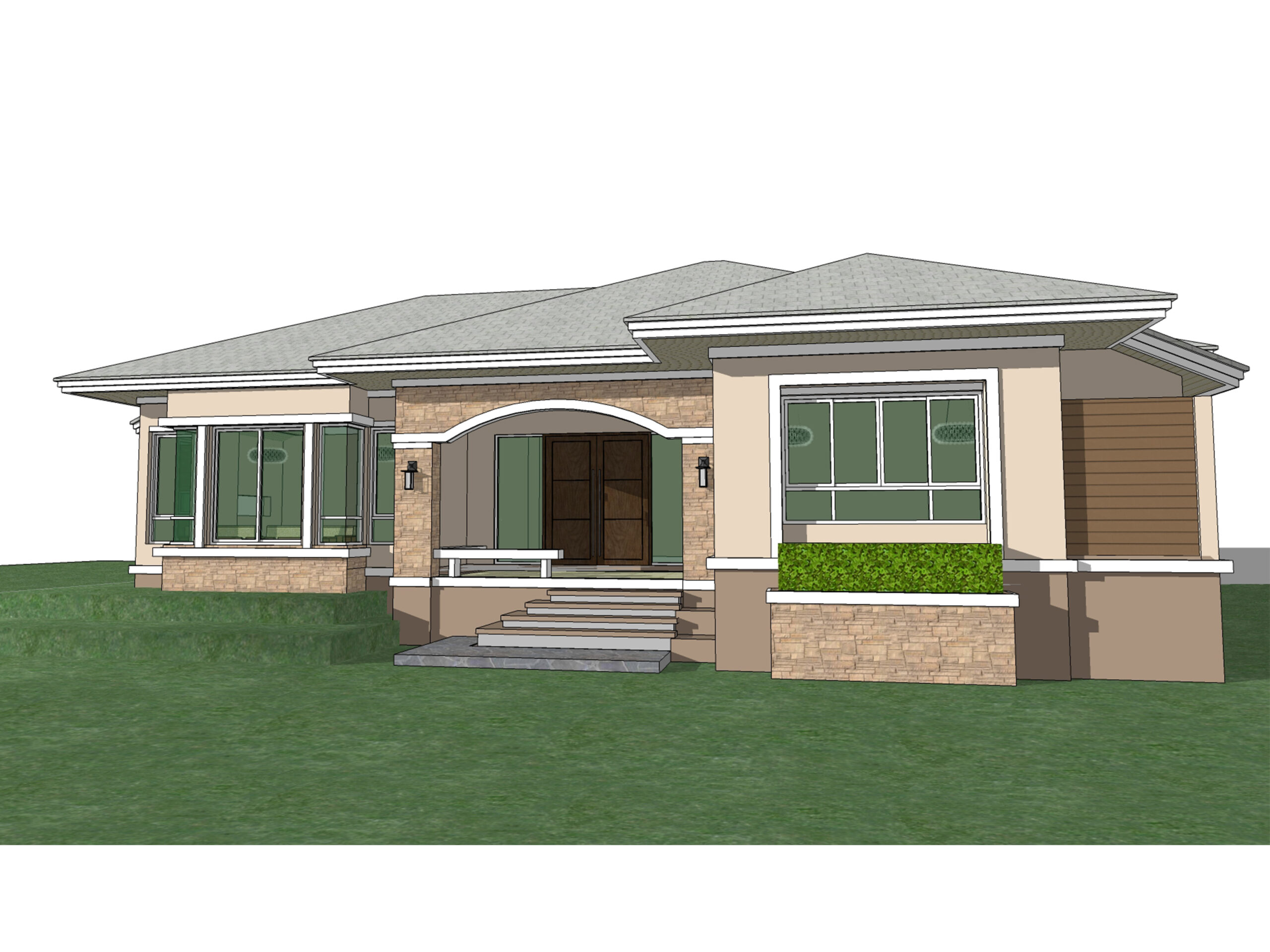 แบบบ้านชั้นเดียว สไตล์คอนเทมโพรารี่ พื้นที่ภายในกว้างขวาง ด้วยโถงรับแขกขนาดใหญ่ ที่ออกแบบเป็นพิเศษให้ต่อเนื่องกับส่วนนั่งเล่นแบบเอ้าท์ดอร์ ( Outdoor family) ทางด้านหลังบ้าน ภายใน จัดพื้นที่ใช้สอยให้ต่อเนื่องกัน ของส่วนรับแขก-ทานอาหาร และห้องนั่งเล่น ทำให้ ห้องดูกว้างขวาง,โอ่โถง และดูสะดวกสบาย โดดเด่นด้วยการยกสเตปภายใน เพื่อเน้นความเป็นส่วนตัวสำหรับโซนห้องนอน ที่มีถึง 3 ห้องนอน 2 ห้องน้ำ และห้องพระขนาดพอเหมาะทางด้านหลัง รูปแบบภายนอก ออกแบบให้ดูทันสมัย ด้วยเส้นสาย ดูสะอาดสะอ้าน และไม่น่าเบื่อ ส่วนเฉลียงขนาดใหญ่ ทั้งด้านหน้าบ้าน และหลังบ้านเหมาะนั่งพักผ่อน สัมผัสบรรยากาศสบายๆ รอบตัว แบบบ้านพักผ่อนเหมือนอยู่รีสอร์ทตลอดทั้งปีเลยทีเดียว