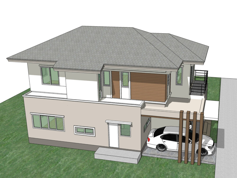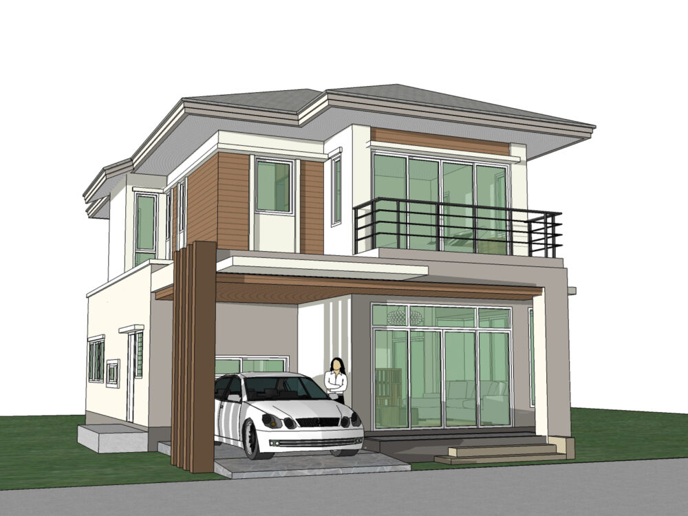 แบบบ้านสองชั้น สไตล์คอนเทมโพรี่ วางผังอาคารบนที่ดินแบบหน้าแคบ ภายในโดดเด่นที่ห้องรับแขกแบบกรีนเฮ้าส์ (Green house) เปิดโล่ง สู่สวนด้านข้าง ต่อเนื่องกับห้องทานอาหาร และห้องครัวด้านข้างบ้าน ส่วนทางด้านหลังบ้าน จัดพื้นที่สำหรับห้องนอนขนาดกลาง 1 ห้องเหมาะเป็นห้องนอนสำหรับผู้สูงอายุ และห้องน้ำรวมอีก 1 ห้อง ส่วนชั้นบนที่โถงส่วนกลาง จัดพื้นที่สำหรับห้องอ่านหนังสือ,ห้องพระขนาดกะทัดรัด และห้องนอนถึง 3 ห้อง โดยห้องนอนใหญ่มีห้องน้ำในตัว ส่วนห้องนอนขนาดกลาง ทางด้านหลัง 2 ห้อง ใช้ห้องน้ำส่วนกลางร่วมกัน แม้จะเป็นบ้านขนาดกลาง แต่เน้นการ ใช้งานที่สะดวกสบาย โดยจัดพื้นที่ให้คุ้มค่าทุกตารางนิ้ว เพื่อทุกห้องจะเป็นห้องโปรดของทุกคนในครอบครัวได้แน่นอน
