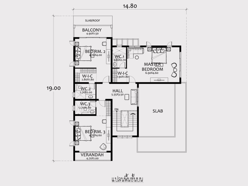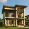 แบบบ้านสองชั้น รูปแบบโมเดิร์นคอนเทมโพรารี่ ขนาด 4 ห้องนอน 5 ห้องน้ำ แบบบ้านทันสมัย ออกแบบผังภายในเอาใจคนรัก ความโปร่งโล่งสบาย ด้วยการออกแบบให้ห้องรับแขกเพดานสูง หรือ ดับเบิ้ลโวลลุ่ม (Double Volume) จึงทำให้ตรงส่วนนี้ ดูกว้าง และโปร่งเป็นพิเศษ ทั้งยังมีความต่อเนื่องกับส่วนนั่งเล่น-พักผ่อน,ส่วนรับประทานอาหาร และห้องครัว ที่อยู่ทางด้านหลังบ้าน พิเศษที่ด้านหน้าบ้าน มีห้องนอนขนาดกลาง สำหรับผู้สูงอายุ มีห้องน้ำในตัว ส่วนชั้นบน ออกแบบให้มีมุมนั่งเล่นเล็กๆ ตรงโถงบันได ก่อนเข้าสู่ห้องนอน ที่มีขนาดกลาง ถึงขนาดใหญ่ ถึง 3 ห้อง ทุกห้องมีห้องน้ำในตัว ด้วยการออกแบบเน้นการใช้สอยที่สะดวกสบาย ภายในเน้นช่องแสงที่กว้าง และส่วนเปิดโล่งขนาดใหญ่ ทำให้ผู้อยู่อาศัยรู้สึกอบอุ่น สบาย รู้สึกผ่อนคลาย ตลอดเวลาที่อยู่บ้าน
