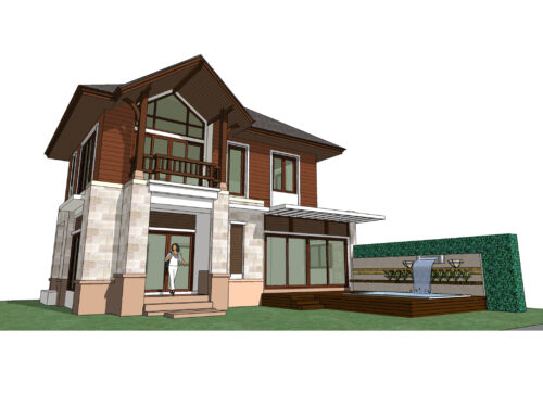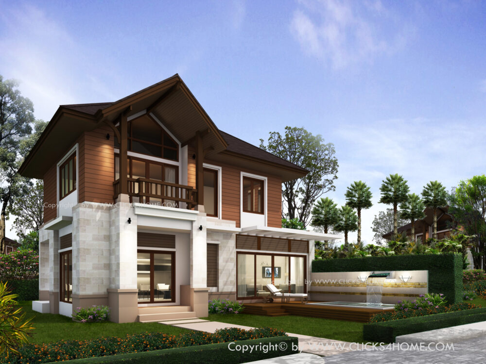แบบบ้านสองชั้นขนาดขนาดกระทัดรัด สไตล์ทรอปปิคอล เน้นทางเข้าบ้านให้ดูหรูหรา สง่างามด้วยหลังคาทรงจั่ว ดูโดดเด่นไม่เหมือนใคร พื้นที่ใช้สอยภายใน ในทุกตารางนิ้ว จัดแบ่งอย่างคุ้มค่า ที่ชั้นล่าง ห้องรับแขก – ทานอาหาร ต่อเนื่องกับครัวแพนทรี่ ชั้นบน ห้องนอนใหญ่ พร้อมส่วนแต่งตัวใหญ่ , ห้องนอนเล็ก 2 ห้อง เรียกได้ว่า ครบครันทุกฟังก์ชั่นการใช้สอย สำหรับ การใช้ชีวิตของครอบครัวคุณ นอกจากนี้ยังพิเศษที่ส่วนนั่งเล่นส่วนตัว ที่แยกเป็นสัดส่วน ต่อเนื่องกับระเบียงไม้และสระว่ายน้ำ ทางด้านหน้าบ้าน เหมาะจะเป็นห้องของทั้งครอบครัว ไม่ว่าจะใช้เป็นห้องทำงาน , ห้องดูทีวี หรือห้องทำการบ้านของเด็ก ๆ ได้อย่างสบายๆ